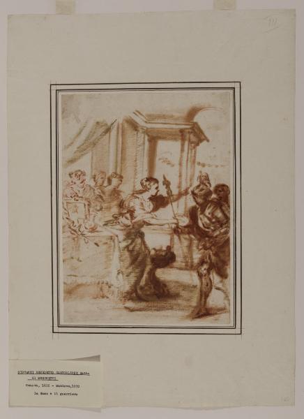 - NOTIZIE STORICO CRITICHE Nel 1944 Nicodemi attribuisce questo nucleo di undici disegni alla maturità di Giovanni Battista Castiglione, detto il Grechetto (curiosamente, non pubblica il foglio Au. D 65/13). Nel 2000 Morandotti inserisce i dodici disegni nel catalogo di Antonio Lagorio, tra i seguaci del genovese Valerio Castello. Notevole è la sintonia tra l'attività da disegnatore di Lagorio e le opere grafiche del Grechetto, come evidenziato non solo dai disegni del Castello Sforzesco, ma anche da un "Sant'Antonio che benedice una giovane donna inginocchiata" a pennello e olio su carta, passato all'asta da Sotheby's di New York il 12 gennaio 1994 (come opera genovese del Seicento) e rivisto nell'asta Finarte di Milano il 22 novembre 2000 (attribuito al Grechetto), appartenente quest'ultimo a padre Sebastiano Resta (Morandotti 2000). Tutti questi tredici fogli sono, secondo Morandotti, attribuibili a Lagorio per caratteristiche comuni quali la simile tecnica esecutiva, le tipologie dei volti, le scelte cromatiche. Nella scheda digitale è stata inserita, in epoca imprecisata, un'attribuzione dubitativa al pittore barocco genovese Giovanni Battista Merano (1632-1698).