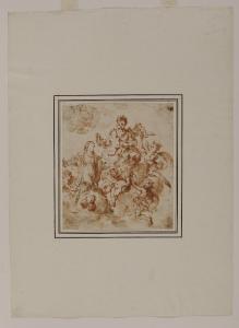 - NOTIZIE STORICO CRITICHE Nel 1944 Nicodemi attribuisce questo nucleo di undici disegni alla maturità di Giovanni Battista Castiglione, detto il Grechetto (curiosamente, non pubblica il foglio Au. D 65/13). Nel 2000 Morandotti inserisce i dodici disegni nel catalogo di Antonio Lagorio, tra i seguaci del genovese Valerio Castello. Notevole è la sintonia tra l'attività da disegnatore di Lagorio e le opere grafiche del Grechetto, come evidenziato non solo dai disegni del Castello Sforzesco, ma anche da un "Sant'Antonio che benedice una giovane donna inginocchiata" a pennello e olio su carta, passato all'asta da Sotheby's di New York il 12 gennaio 1994 (come opera genovese del Seicento) e rivisto nell'asta Finarte di Milano il 22 novembre 2000 (attribuito al Grechetto), appartenente quest'ultimo a padre Sebastiano Resta (Morandotti 2000). Tutti questi tredici fogli sono, secondo Morandotti, attribuibili a Lagorio per caratteristiche comuni quali la simile tecnica esecutiva, le tipologie dei volti, le scelte cromatiche. Nella scheda digitale è stata inserita, in epoca imprecisata, un'attribuzione dubitativa al pittore barocco genovese Giovanni Battista Merano (1632-1698).\nSecondo Mancini (2006), la struttura della corporatura dell'angelo a destra è riscontrabile anche nel "San Luca dipinge la Vergine" del Musée des Beaux-Arts di Digione, attribuito dubitativamente al Grechetto.