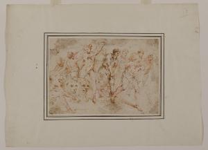 - NOTIZIE STORICO CRITICHE Nel 1944 Nicodemi attribuisce questo nucleo di undici disegni alla maturità di Giovanni Battista Castiglione, detto il Grechetto (curiosamente, non pubblica il foglio Au. D 65/13). Nel 2000 Morandotti inserisce i dodici disegni nel catalogo di Antonio Lagorio, tra i seguaci del genovese Valerio Castello. Notevole è la sintonia tra l'attività da disegnatore di Lagorio e le opere grafiche del Grechetto, come evidenziato non solo dai disegni del Castello Sforzesco, ma anche da un "Sant'Antonio che benedice una giovane donna inginocchiata" a pennello e olio su carta, passato all'asta da Sotheby's di New York il 12 gennaio 1994 (come opera genovese del Seicento) e rivisto nell'asta Finarte di Milano il 22 novembre 2000 (attribuito al Grechetto), appartenente quest'ultimo a padre Sebastiano Resta (Morandotti 2000). Tutti questi tredici fogli sono, secondo Morandotti, attribuibili a Lagorio per caratteristiche comuni quali la simile tecnica esecutiva, le tipologie dei volti, le scelte cromatiche. Nella scheda digitale è stata inserita, in epoca imprecisata, un'attribuzione dubitativa al pittore barocco genovese Giovanni Battista Merano (1632-1698).