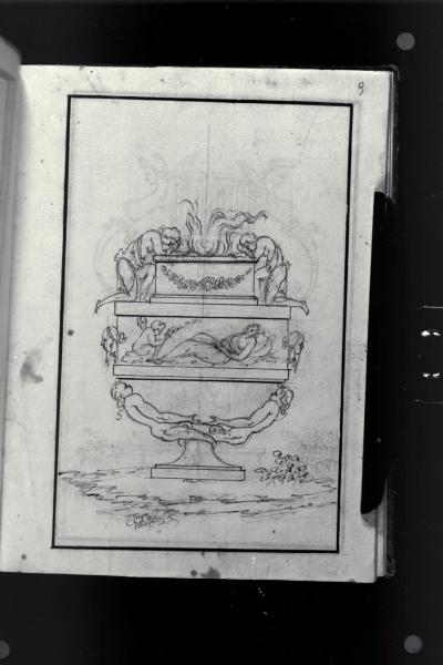 Idee di varii vasi: Vaso ardente, con sacrificio e compianto
