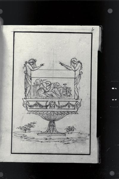 Idee di varii vasi: Vaso con protomi e figure ploranti