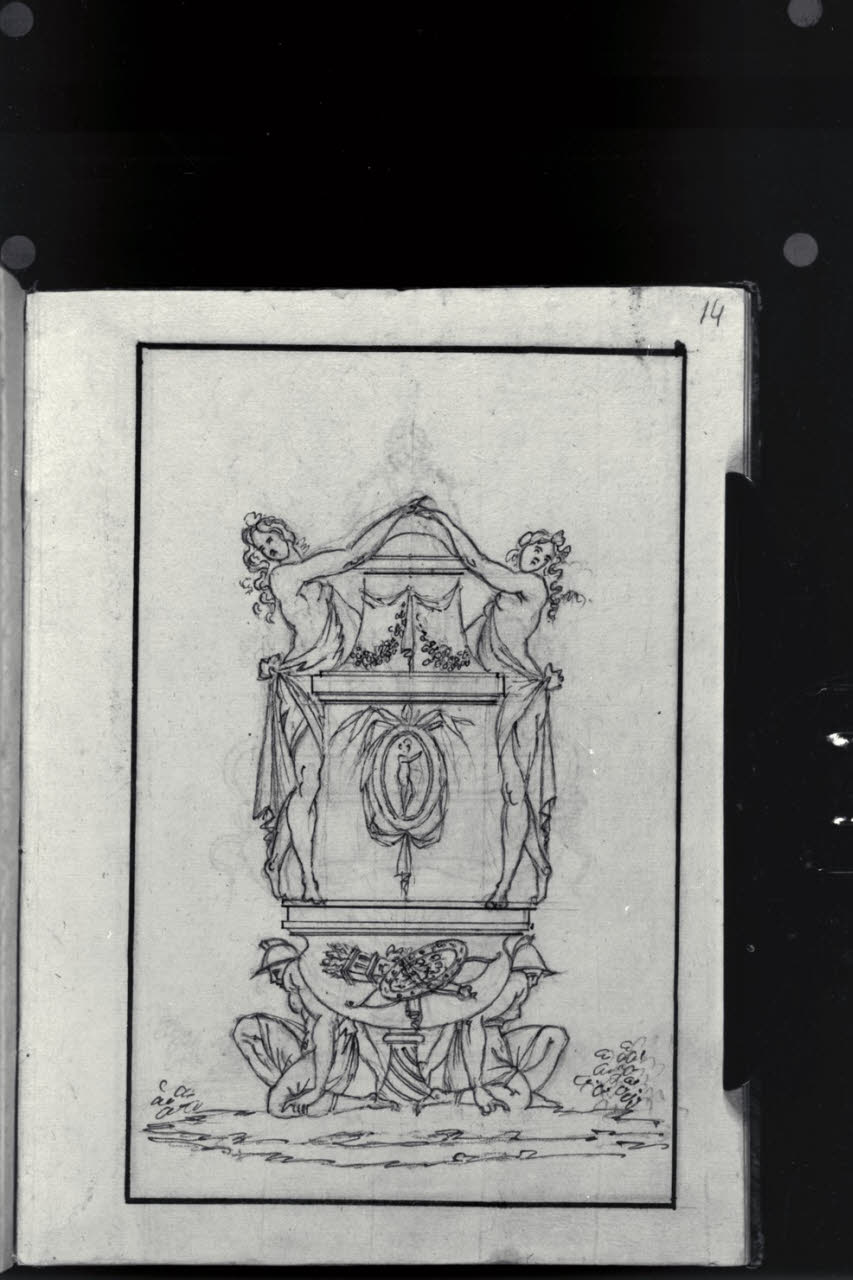 Idee di varii vasi: Vaso con cariatidi armate e menadi