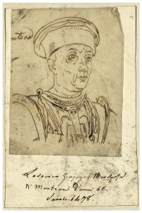 - NOTIZIE STORICO CRITICHE Già appartenuto alla collezione di Luigi Conconi, questo disegno di Tranquillo Cremona raffigura il ritratto a mezzo busto di Lodovico Gonzaga marchese di Mantova. L'effigie è derivata nello stesso verso dall'illustrazione incisa contenuta ne "Ritratti et elogii di capitani illustri" (p. 119) di Giulio Roscio, volume pubblicato a Roma nel 1635. L'artista appuntò inoltre accanto al ritratto alcune notizie biografiche del personaggio desunte dall'elogio di Roscio, poi ritagliate. Durante gli anni della sua formazione, ricevuta prima a Venezia e poi a Milano, Cremona si esercitò lungamente attraverso la pratica del disegno: nota è del resto l'abitudine del pittore di portare sempre con sé dei taccuini da disegno nelle sue visite a musei e gallerie (cfr. L. Beltrami, Un maestro Tranquillo Cremona, 1837-1878, Roma 1929). Il foglio in esame fa parte di una serie di uomini illustri immortalati da Cremona a scopo documentario e destinato forse ad un'impresa mai realizzata.