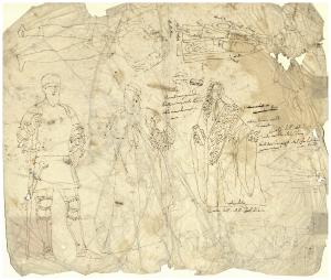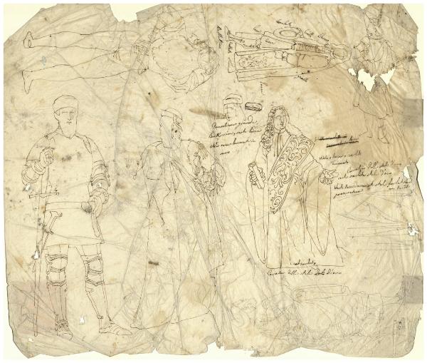 Studio di una figura maschile in armatura medievale e di altre figure maschili in costume. Studio di una figura maschile in armatura medievale e di altre figure maschili in costume