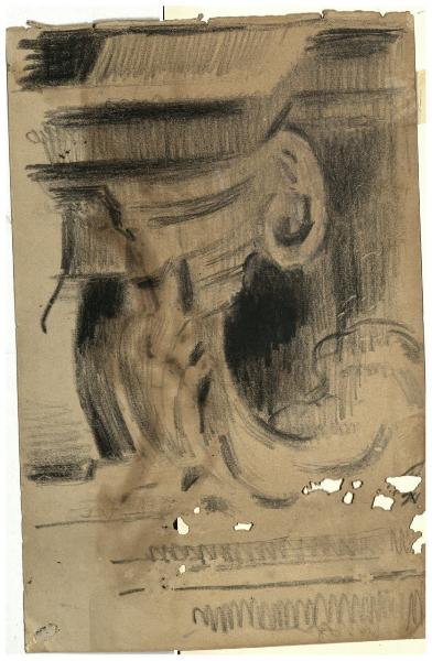 - NOTIZIE STORICO CRITICHE Già appartenuto alla collezione di Luigi Conconi, questo disegno a penna di Tranquillo Cremona mostra il particolare di una decorazione architettonica. Il foglio in esame proviene dallo stesso taccuino del disegno 2187/48, anch'esso raffigurante alcuni particolari architettonici. I due fogli appartengono con tutta probabilità al periodo di formazione accademica del Cremona a Milano.
