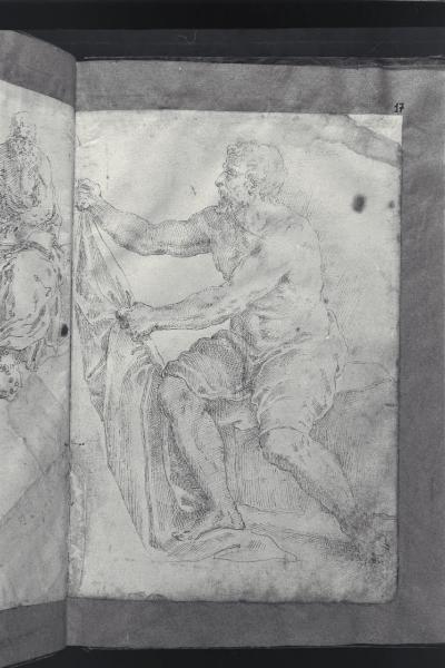 Figura maschile seduta, con un drappo in mano. Figura maschile seduta, con un drappo in mano
