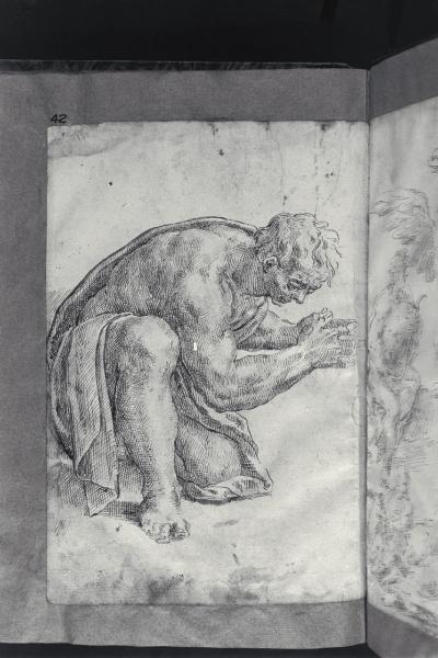 - NOTIZIE STORICO CRITICHE L'invenzione presenta marcate similitudini con due studi da modello autografi di Bastianino, a matita nera su carta azzurra, custoditi al Christ Church College di Oxford (inv. n. 1912) e al Kupferstichkabinett di Berlino (inv. n. KdZ 20817). Sono altresì riscontrabili riferimenti con opere pittoriche dello stesso artista, in particolare le due raffigurazioni a Ferrara del "Giudizio Universale" (affresco nella cattedrale e dipinto già in San Cristoforo alla Certosa) e la tela con "Il battesimo di san Romano" oggi nella Pinacoteca Nazionale di Ferrara, un tempo conservata nella chiesa di San Romano.