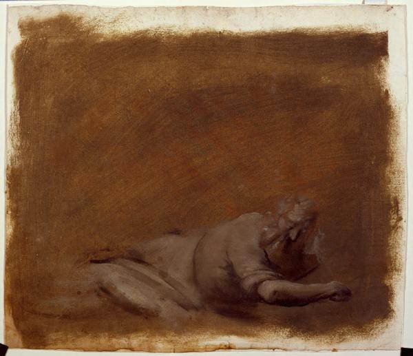 pennello a tempera bruno scuro e biacca su carta preparata in bruno