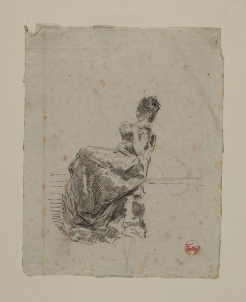 - NOTIZIE STORICO CRITICHE Appartenuto alla collezione del pittore Eleuterio Pagliano, questo disegno di una figura femminile seduta venne eseguito dall'artista di origine spagnola Mariano Fortuny y Marsal e in basso a destra reca il suo caratteristico timbro. Sconosciuta è l'identità della donna ritratta, ma dal confronto con altri studi dello stesso soggetto disegnati da Fortuny durante il soggiorno con la moglie e i coniugi Agrasot nella Villa Arata di Portici nell'estate del 1874 (Vives i Pique, Cuenca Gracia 1994, p. 92), è possibile datare il foglio attorno a questa data.