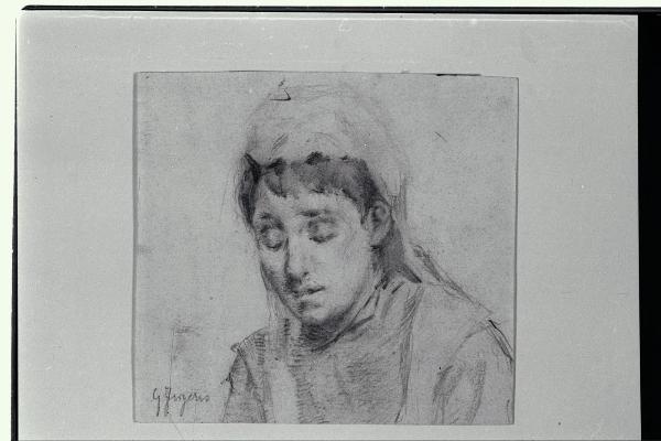 Testa di donna con occhi socchiusi