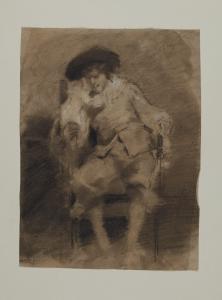 Figura maschile seduta in costume