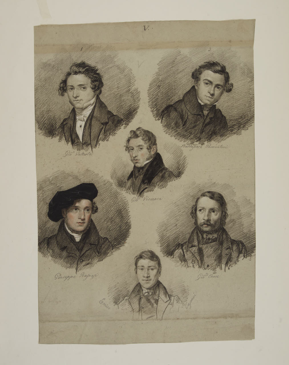 Sei ritratti a mezzo busto: Giovanni Valtorta, Baldassare Pamentoni, Giovanni Vismara, Giuseppe Rasnesi, Giovanni Croce, Enrico Cassani
