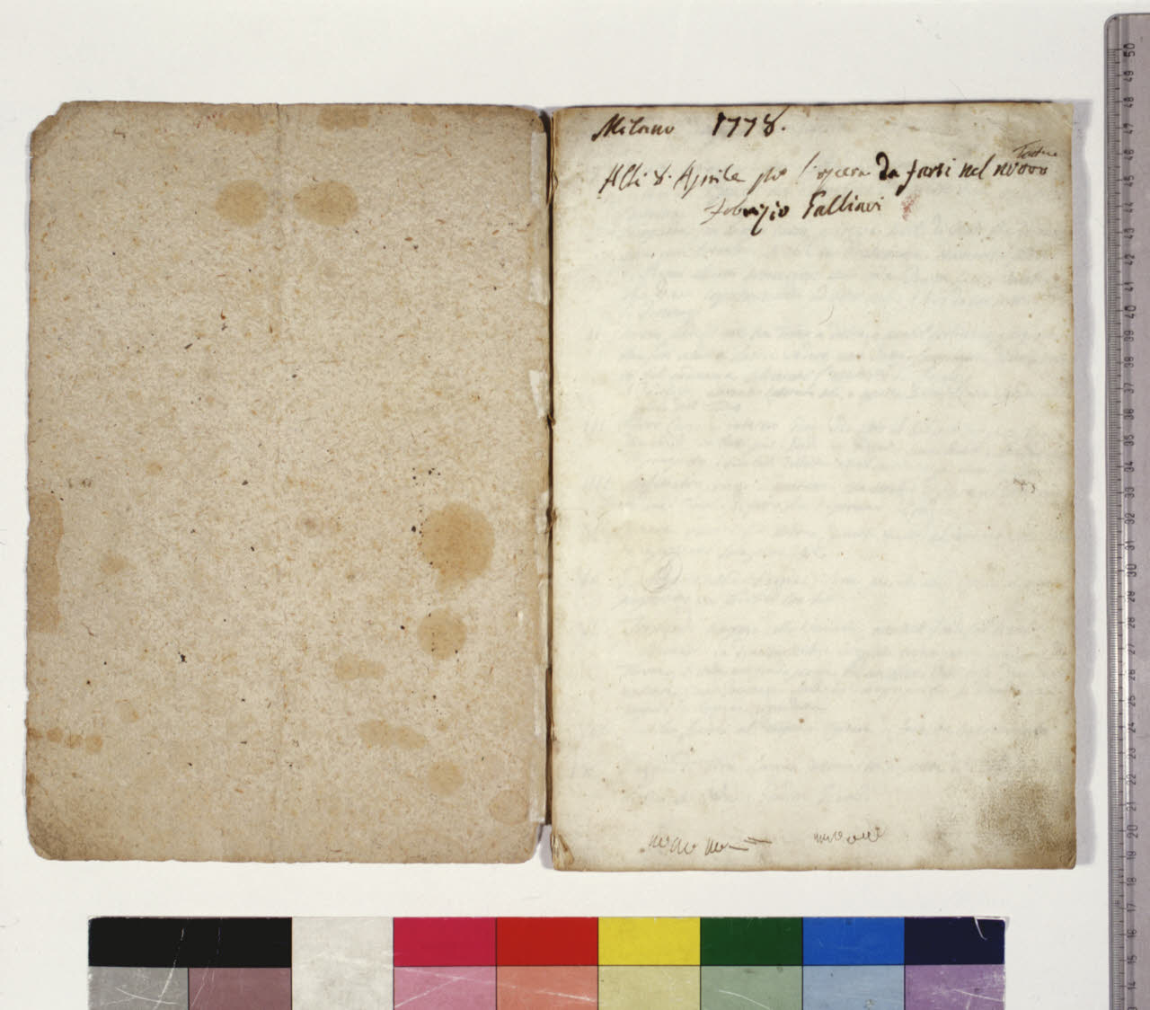 - NOTIZIE STORICO CRITICHE Grazie all'intestazione manoscritta presente sul frontespizio, e all'elenco al foglio 2, apprendiamo che l'album contiene schizzi, bozzetti, idee per l'opera "Europa riconosciuta", dramma in due atti su libretto dell'abate Mattia Verazi e musica di Antonio Salieri. Con questo titolo fu inaugurato con successo, la sera del 3 agosto 1778, il neonato Teatro alla Scala, eretto in sostituzione del distrutto Teatro Regio Ducale; le scenografie dell'opera furono curate dai fratelli Galliari.\nL'iscrizione del frontespizio è di pugno di Fabrizio Galliari, autore dei disegni dell'album. Opera di un Fabrizio oramai settantenne, i bozzetti scenici non presentano più la grazia frizzante e il dinamismo dei suoi disegni giovanili, ma sono comunque improntati a chiarezza espositiva ed eleganza e a un tocco leggero. Il gusto di questi abbozzi oscilla tra classicismo e barocchetto, con qualche interferenza neogotica.