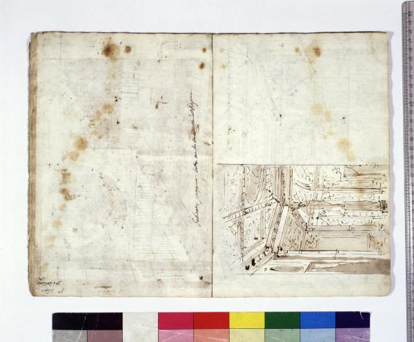 - NOTIZIE STORICO CRITICHE Grazie all'intestazione manoscritta presente sul frontespizio, e all'elenco al foglio 2, apprendiamo che l'album contiene schizzi, bozzetti, idee per l'opera "Europa riconosciuta", dramma in due atti su libretto dell'abate Mattia Verazi e musica di Antonio Salieri. Con questo titolo fu inaugurato con successo, la sera del 3 agosto 1778, il neonato Teatro alla Scala, eretto in sostituzione del distrutto Teatro Regio Ducale; le scenografie dell'opera furono curate dai fratelli Galliari.\nLa didascalia è di pugno di Fabrizio Galliari, autore dei disegni dell'album.