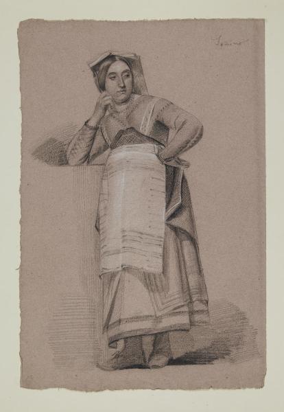 Studio di figura femminile stante in costume da ciociara