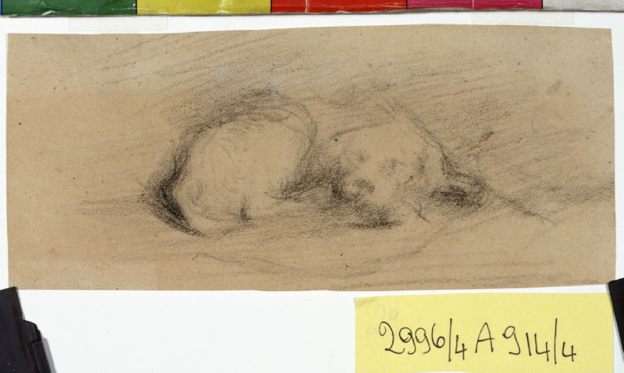 Schizzo di un cane accucciato. Schizzo di un cane accucciato