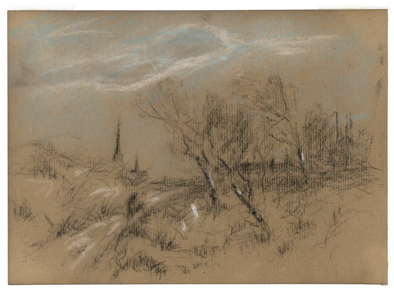 - NOTIZIE STORICO CRITICHE Vittore Grubicy realizzò questo paesaggio durante il suo soggiorno nelle Fiandre e lo stile rapido e abbreviato del tratto anticipa uno stile più maturo, emerso successivamente nei disegni eseguiti a Schialpario (Rebora 1995).