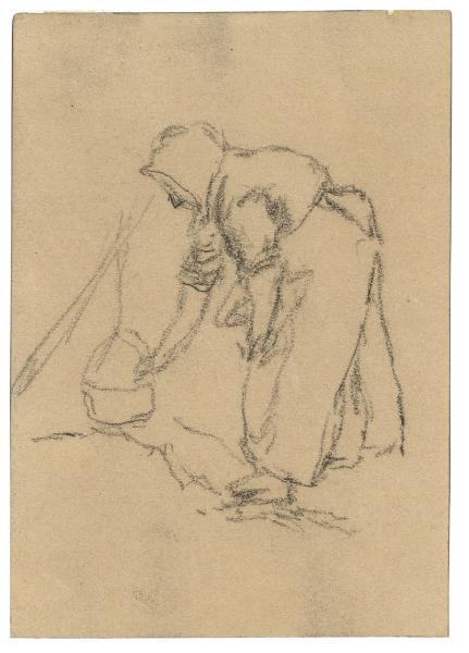- NOTIZIE STORICO CRITICHE Questo disegno venne molto probabilmente eseguito da Vittore Grubicy attorno al 1884, durante il suo soggiorno nelle Fiandre, e raffigura una donna intenta a cucinare, presentando una tematica molto diffusa nella pittura olandese di quegli anni. Anche il segno marcato nei contorni con l'estrema semplificazione nella struttura, si avvicina a quello dei più affermati maestri locali (Rebora 1995).