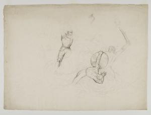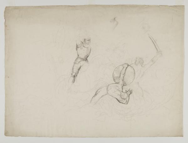 - NOTIZIE STORICO CRITICHE Il foglio, tradizionalmente riferito a Francesco Hayez nell'inventario museale redatto da Giorgio Nicodemi, è un primo studio per un soggetto storico non ancora identificato raffigurante alcuni guerrieri nudi e in armatura in atto di combattere. Nella mischia della battaglia, si riconosce un uomo ripararsi dietro ad uno scudo circolare mentre altri due combattenti, di cui uno a cavallo, si affrontano con le spade. Il disegno pervenne nelle raccolte comunali con l'acquisto della collezione Gaffuri.