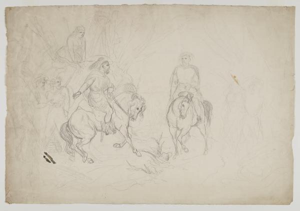 - NOTIZIE STORICO CRITICHE Già riferito a Francesco Hayez nell'inventario museale redatto da Giorgio Nicodemi, questo foglio è un primo studio per un soggetto storico non ancora identificato in cui è raffigurato l'incontro di due cavalieri alla presenza di alcuni personaggi. Il disegno pervenne nelle raccolte comunali con l'acquisto della collezione Gaffuri.