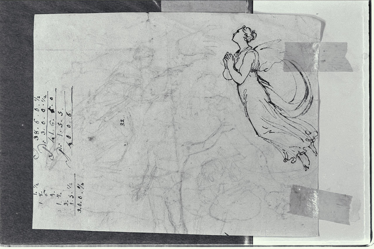 Schizzo di figura femminile in volo con le mani giunte