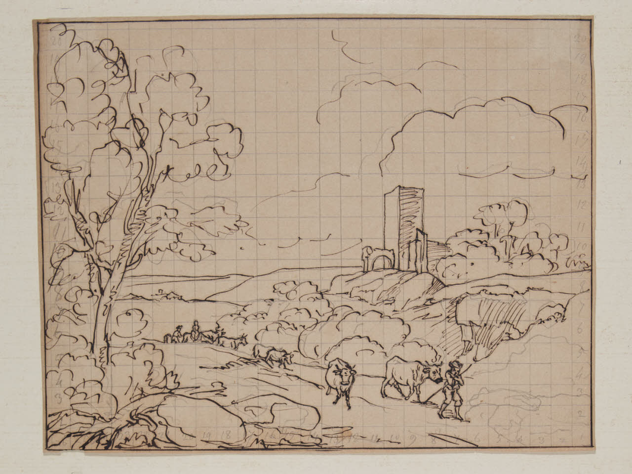 carta/ grafite/ penna e inchiostro/ quadrettatura a grafite