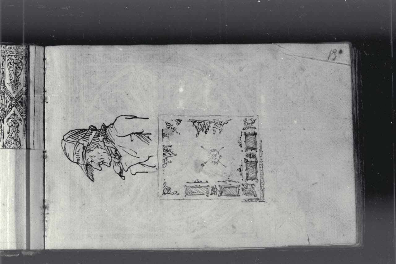 Studio di mezza figura maschile e particolari decorativi