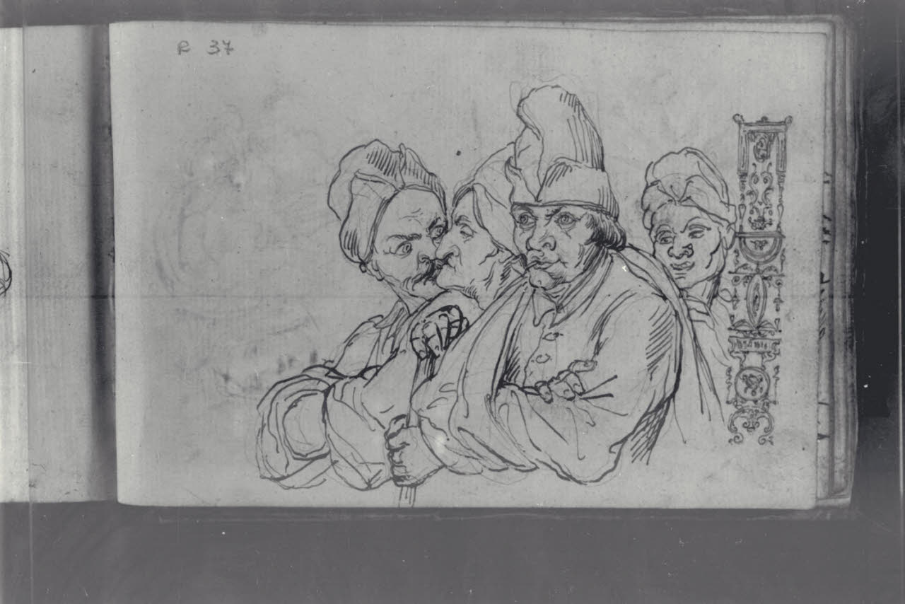 Studio di quattro figure maschili a mezzo busto e motivo decorativo