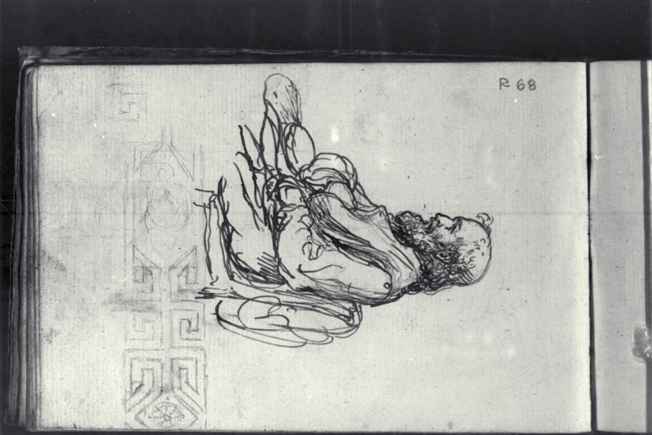 Vecchio barbuto di profilo seduto e particolare decorativo