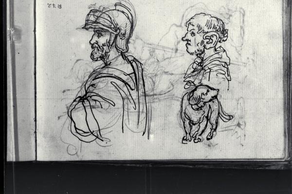Due profili maschili a mezzo busto e un cane