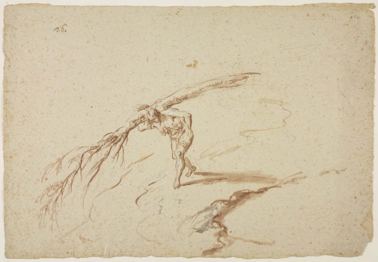 carta paglierina/ penna e inchiostro/ pennello e inchiostro/ biacca (parzialmente ossidata)/ su traccia a matita