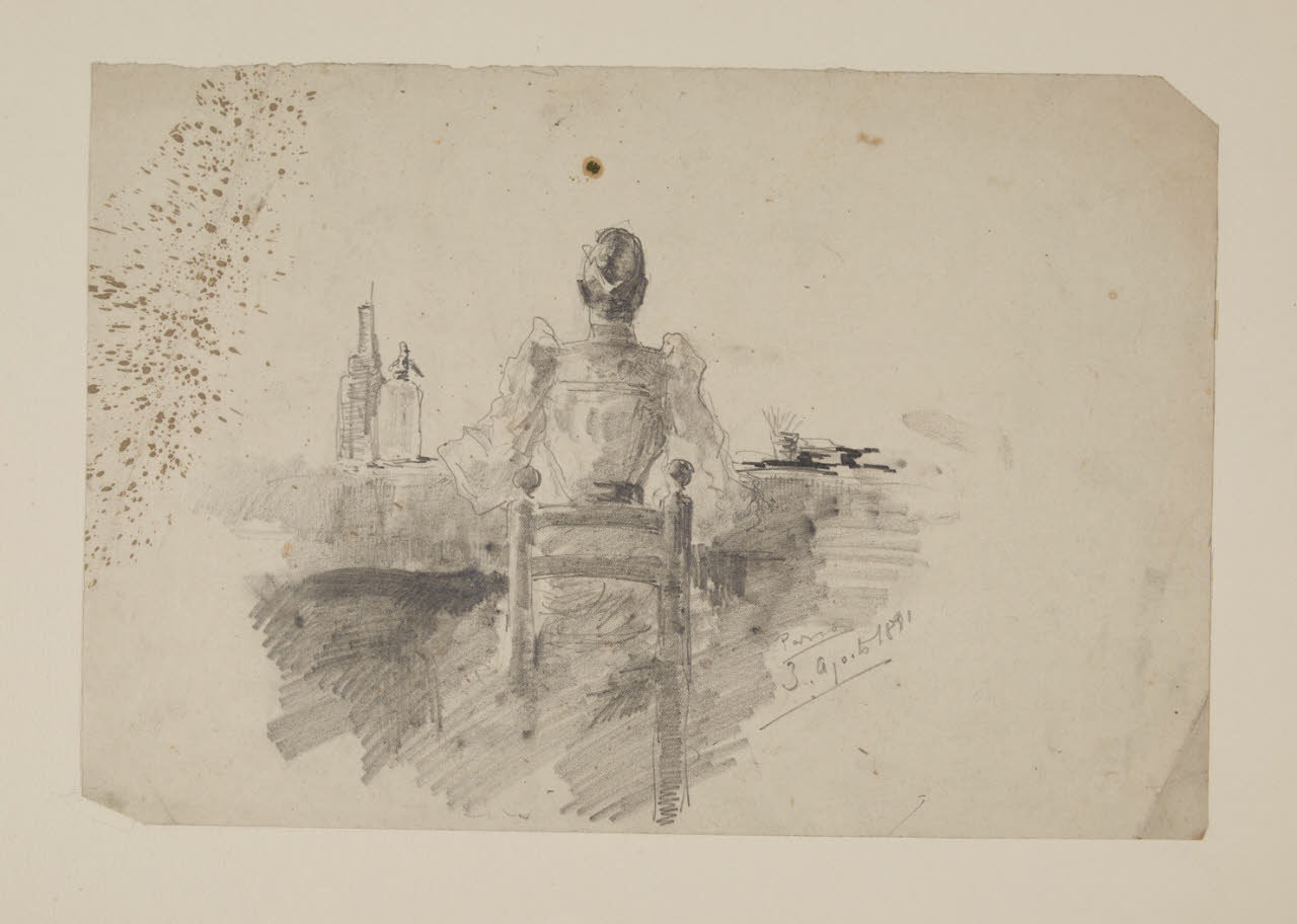 Donna seduta a un tavolo vista da tergo