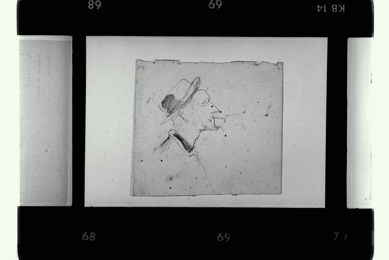 Caricatura di uomo che fuma di profilo