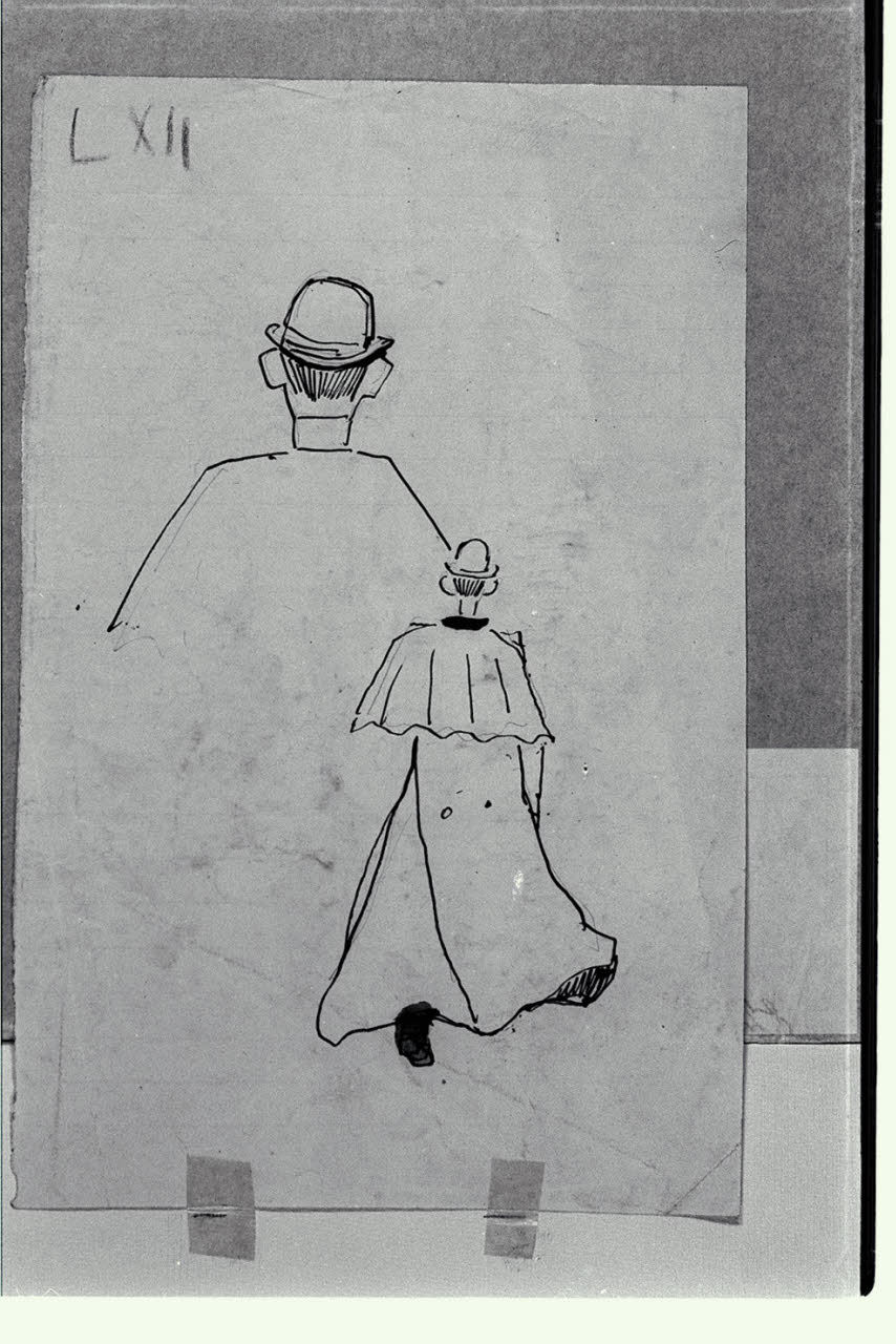 Due figure caricaturali viste da tergo