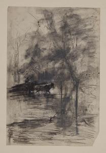 carta/ pietra nera/ tracce di gessetto bianco/ sfumino/ grafite