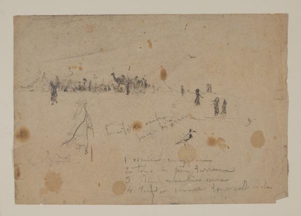 Paesaggio orientale con figure e dromedari