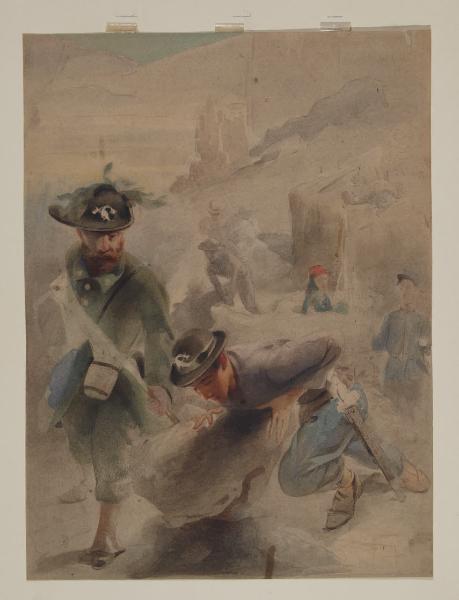Paesaggio roccioso con soldati e due bersaglieri