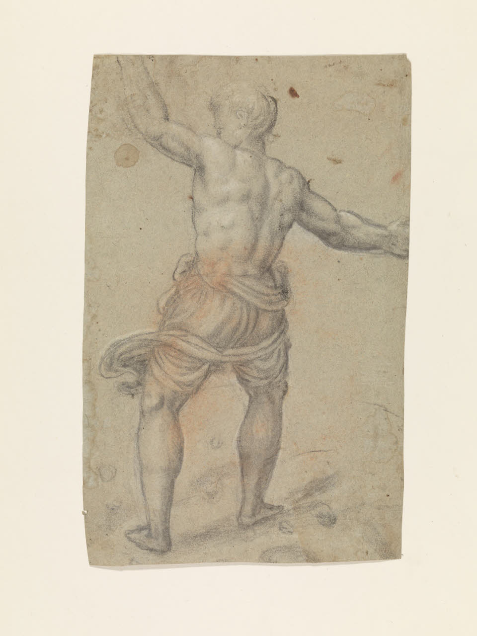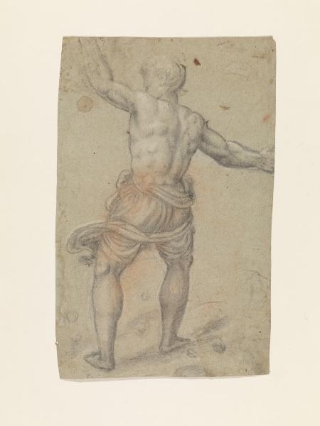 - NOTIZIE STORICO CRITICHE Il disegno è stato identificato come uno studio per la figura dello sgherro di spalle in primo piano nel Martirio di Santo Stefano di Lattanzio Gambara (1566) nella collegiata di S. Stefano a Vimercate (Rame 2012).