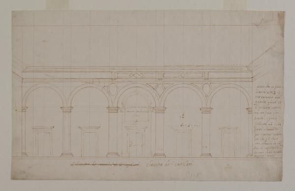 Prospetto-sezione di un progetto per il "claustro de i capelani". Studio per la canonica di Santa Barbara (Mantova, Palazzo Ducale)