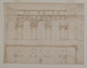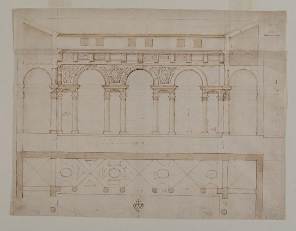 Progetto per il "claustro de i capelani" (?), sezione. Studio per la canonica di Santa Barbara (Mantova, Palazzo Ducale)