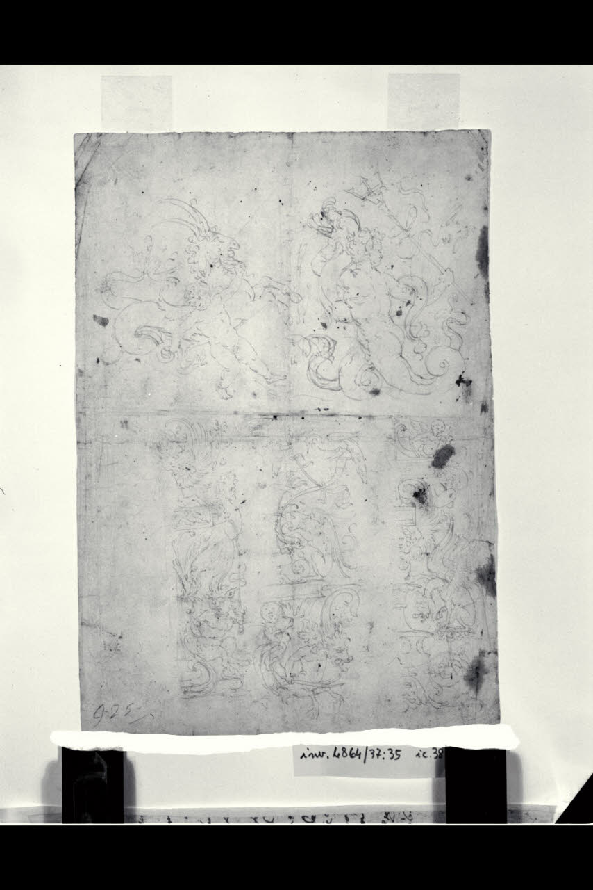 Studio di particolari e di motivi decorativi (nel verso frammento di lettera incollata). Studio di particolari e di motivi decorativi (nel verso frammento di lettera incollata)