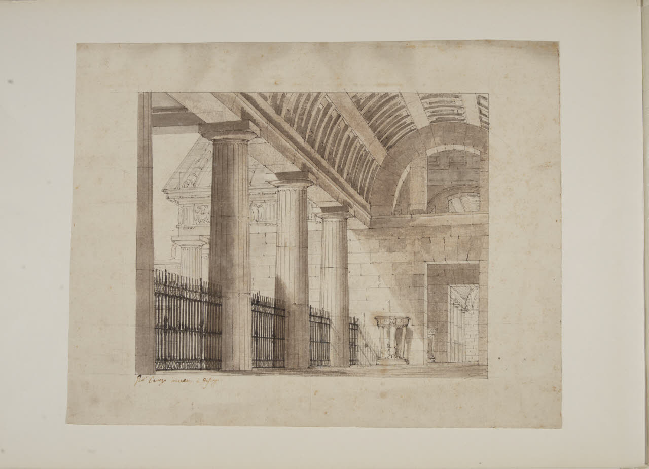 Recinto di un tempio. Veduta scenografica di portico