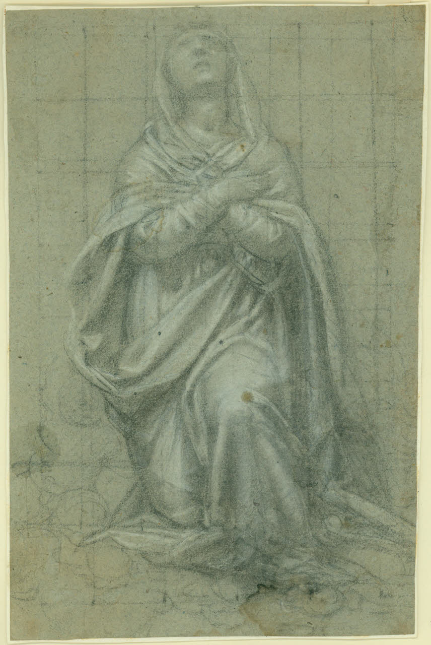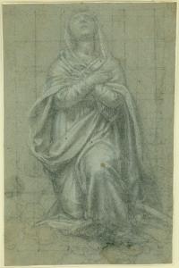 - NOTIZIE STORICO CRITICHE Il foglio è uno studio preparatorio per la figura dell'Assunta nell'Assunzione della Vergine e Santi nella parrocchiale dei Santi Pietro e Paolo di Vertemate, una pala identificata con il dipinto già in Santa Maria di Brera.