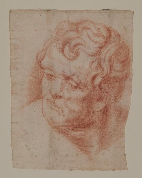 - NOTIZIE STORICO CRITICHE A livello di inventario il disegno a matita rossa, opera di scuola lombarda della seconda metà del XVI secolo, è attribuito dubitativamente a Simone Peterzano. Non è chiara la provenienza del foglio, poiché la scheda dattiloscritta inventariale riporta annotazioni scritte rimandanti sia alla collezione Trivulzio che al fondo San Celso. Il disegno presenta la filigrana dello scudo.