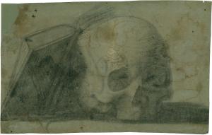 Teschio e libro aperto