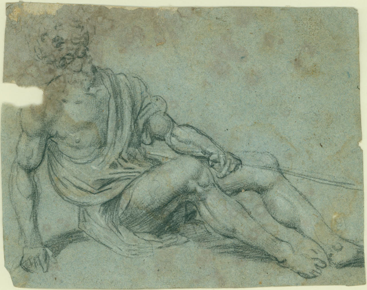 disegno su carta grigio-azzurra eseguito a pietra nera con lumeggiature a gessetto bianco