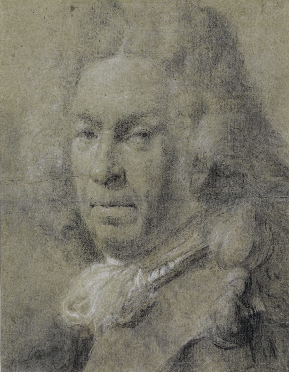 - NOTIZIE STORICO CRITICHE Il disegno in esame, già nella raccolta Trivulzio e forse in precendenza in quella di Alberico XII Barbiano di Belgioioso d'Este, è uno dei lavori più noti del Piazzetta. Non si tratta di una "testa di carattere", bensì del ritratto del feldmaresciallo di origine sassone Mathias von der Schulenburg (1661-1747), uomo d'armi, mecenate e collezionista, tra le figure più eminenti della prima metà del Settecento della Serenissima. Messosi al servizio della Repubblica di Venezia, dopo alcune missioni che lo portarono a toccare diverse città in Europa, si stabilì in territorio veneziano e qui chiamò al suo servizio una pletora di artisti, tra i quali Piazzetta, Giacomo Ceruti, Giuseppe Nogari e Gian Antonio Guardi, solo per citrare qualche nome. Particolarmente stretto appare il rapporto tra Schulenburg e Piazzetta, al quale il condottiero-mecenate non affidò solamente la realizzazione di dipinti e disegni, ma anche l'incarico di esperto, chiamato a valutare gli acquisti di opere d'arte per la propria collezione, nonché a valutarne la stima. I primi contatti tra i due dovettero avvenire nel 1731 quando entrarono nelle collezioni del feldmaresciallo Schulenburg ben quindici teste a carboncino di mano del Piazzetta. Pochi anni più tardi, Schulenburg commissionò all'artista la realizzazione di ben due suoi autoritratti. Infatti, sebbene in epoche differenti, quasi tutti gli artisti che lavorarono per il feldmaresciallo furono chiamati a ritrarlo, in disegni, pitture o sculture. Attorno al 1735 risalirebbe una prima effigie eseguita dal Piazzetta oggi conservata presso l'Art Institute of Chicago, mentre al 1738 sarebbe da collocare il ritratto del Castello Sforzesco: in quest'ultimo foglio Schulenburg è raffigurato forse un po' più idealmente che nell'altro disegno, meno in là con gli anni e con un'espressione più bonaria e quasi goldoniana (cfr. Precerutti Garberi 1971, n. 3).