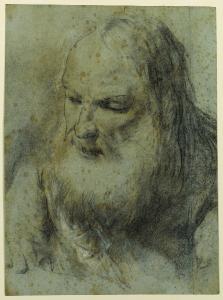 - NOTIZIE STORICO CRITICHE Proveniente dalla Raccolta Trivulzio, questo foglio con una testa di vecchio barbuto di tre quarti a sinistra venne pubblicato una prima volta da Nicodemi (1945) come autografo di Giovanni Battista Piazzetta. Nel 1971, Precerutti Garberi confermava l'assegnazione del disegno al Piazzetta, che non è stata però recepita dalla critica più recente. La studiosa, pur notando i numerosi ripassi subiti dal foglio, lo accostava idealmente alla serie di Apostoli dipinta da Piazzetta e incisi da Marco Pitteri. Il foglio subì in passato delle mutilazioni come si evince dal taglio longitudinale sul lato destro e fu risanato da un restauro in antico; nonostante questo, lo stato di conservazione attuale dell'opera permette di apprezzare a pieno la vivezza con la quale è stato reso il modello.