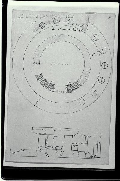 Pianta e rilievi architettonici del Tempio di Vesta in Tivoli