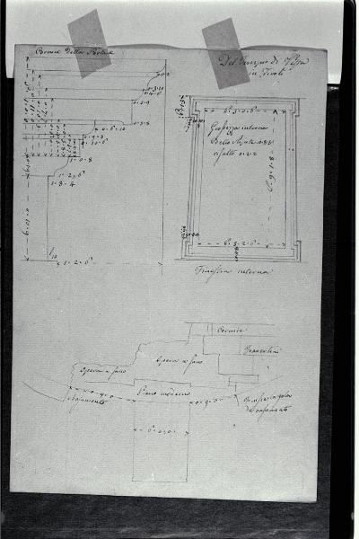 - NOTIZIE STORICO CRITICHE Relativamente al Tempio di Vesta in Tivoli, oltre a questo disegno Pollack ne ha eseguiti almeno altri sette, tutti minuziosamente quotati e relativi all'ordine architettonico e alle cornici di porte e finestre (Inv. A 1773, A 1754 r., A 1767 r. e v., A 1759 r. e v., A 1760 v.)